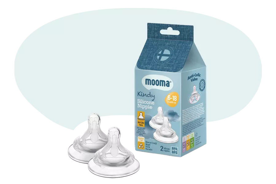 Bu özel emzikler, anti-kolik valf sistemi ile donatılmıştır. Bu sistem sayesinde, biberon içindeki hava, bebeğinizin sindirim sistemine girmeden dışarı atılır. Böylece, gaz sancıları azalır ve bebeğinizin beslenme sırasında kesintisiz bir sıvı akışı sağlar. Mooma Kindy biberon emzikleri yalnızca Mooma Kindy biberonları ile uyumludur, bu da biberonunuzu her zaman doğru şekilde kullanmanıza olanak tanır.